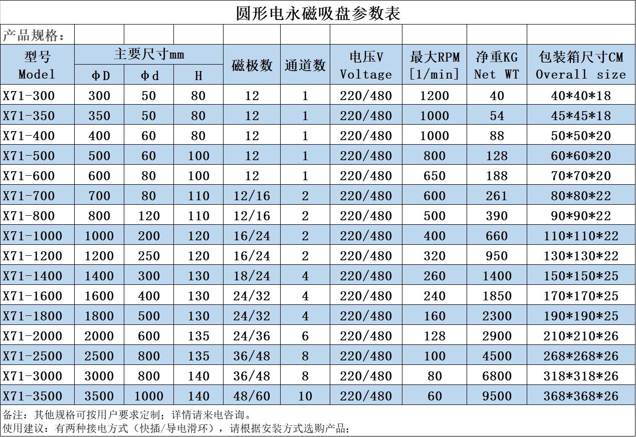 立車圓形電永磁吸盤采用多磁路電控設計,磁力可調,充磁后無需繼續供電,可通過快速接頭卸下連接電纜,工件夾持無障礙,可自由加工工件,真正發揮五面加工之功能;短時瞬間通電充退磁,線圈不發熱,磁盤無任何熱變形,保證加工精度。具有多種型號尺寸,可滿足不同需求。