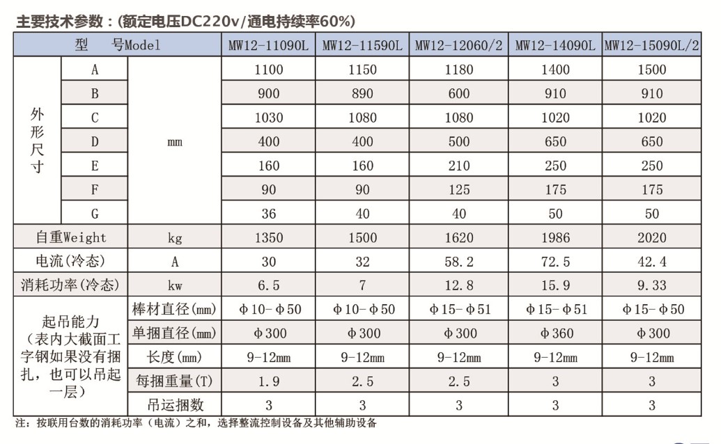 MW12吊鋼帶起重電磁鐵 產(chǎn)品介紹:主要用于冷軋和熱軋板廠吊裝各類鋼卷。 適用于吸掉鋼帶卷(600℃以內(nèi)使用),分為垂直吊運(yùn)型和水平吊運(yùn)型。和傳統(tǒng)的鋼帶卷吊具比較,鋼帶卷用起重電磁鐵更加安全可靠,而且不對對鋼帶卷表面產(chǎn)生任何傷痕。
