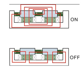 強力電永磁吸盤(示意圖) 強力電永磁吸盤(充退磁原理圖)