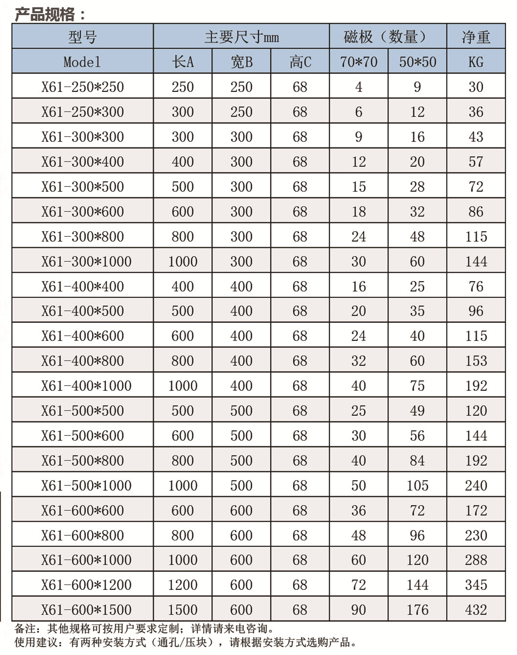 1.金屬切削加工、快速換模(注塑機、陶瓷干壓機)、磁力起重。