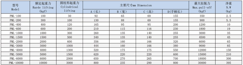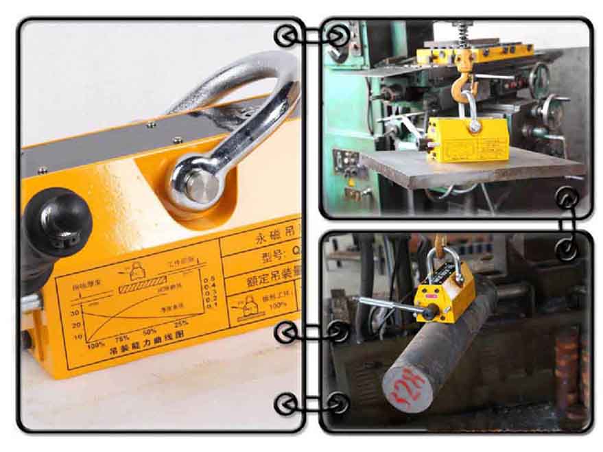 采用高性能磁性材料,使之體積更小,自重更輕,吸持強力。特殊的磁路設計,剩磁幾乎為零。安全系數高,最大拉脫力是額定起重力的3.5倍左右。手柄開關附有安全鈕,可單手操作,方便安全。起重器底面有“V”型槽設計,可起吊相對應的圓鋼、鋼板。不用電,磁力長久不衰,使用安全。可在野外作業,廣泛用于鋼材的起吊搬運,平整的機械零部件,及各種磨具的安裝及搬運。