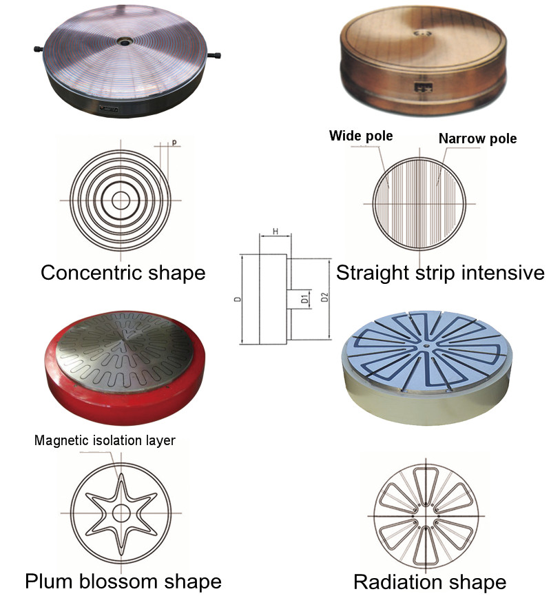 Circular electromagnetic suction cup can be divided into: concentric circle, straight bar, plum, and radiation.